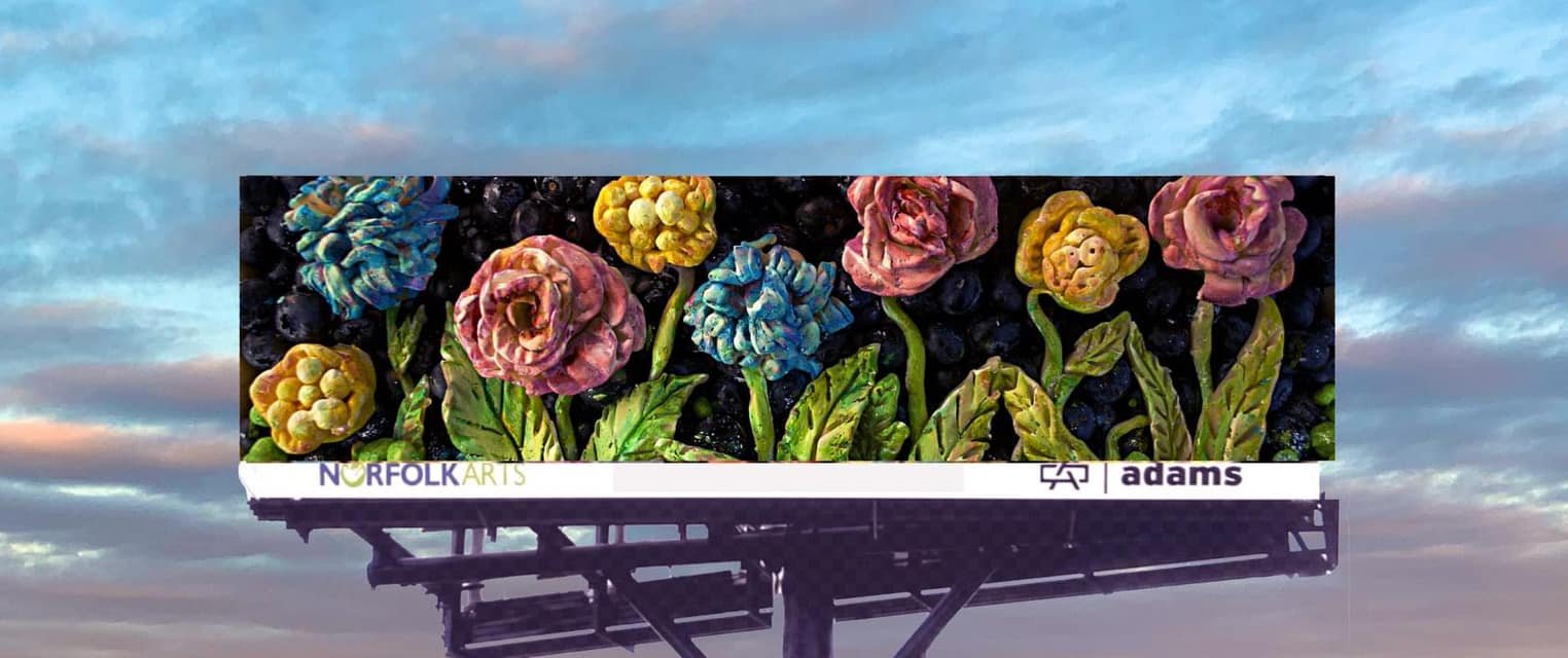 “Blossoms in the Darkness” Blueberry Pie was selected by the Norfolks Arts Council, and it is up on a billboard in Portsmouth, Va.